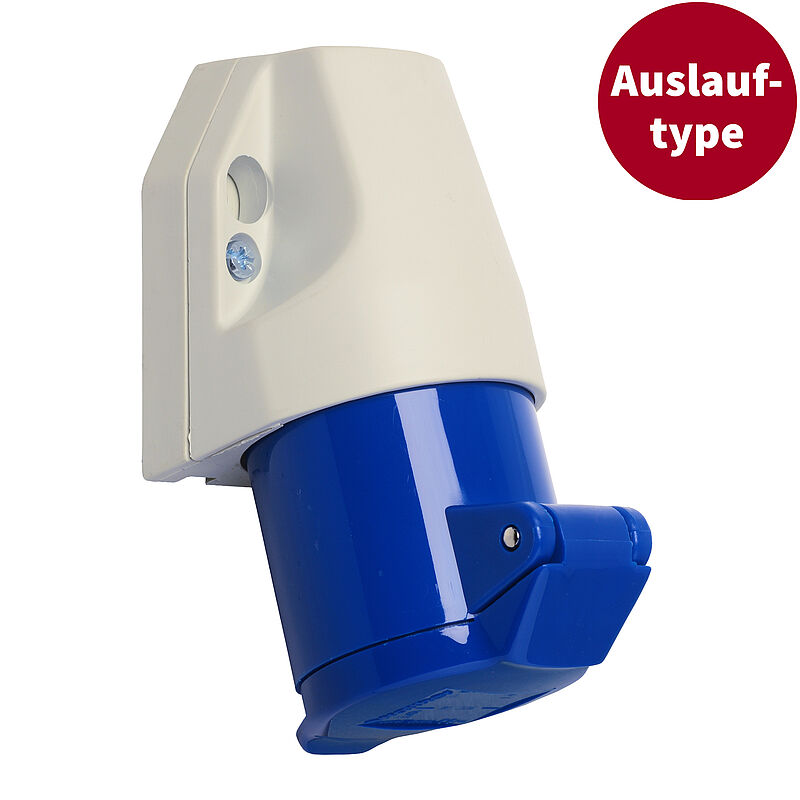 Wandsteckdose zur Außenbefestigung 16A 3P 6h mit einer Kabeleinführung oben und einer Öse für ein Vorhängeschloss