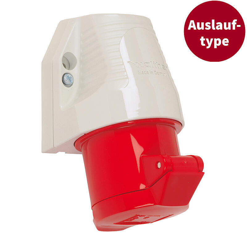 WALTHER Wandsteckdose 16A 4P 400V 6h IP44 aus PA6-Material mit Schraubanschluss und einer Kabeleinführung oben zur Außenbefestigung